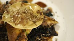 Roast pheasant with ravioli and wild mushrooms
