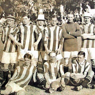 When war was declared on 4 August 1914, Exeter’s football team was a boat in the Atlantic. The team had just played Brazil and 15 players were sailing back from a tour in South America and the ship was shot at. All were to serve in World War One and all were to survive. The touring team of Exeter City FC was a thankful team. But while some returned to football after the war, and even played for England, others would never play again. The club did lose men. Exeter’s amateur players were the first to enlist and to die (the captain of the 1913/14 season George White was the very first). But the ‘tourists’ – those who had played in Brazil, were all to survive the conflict. The first player of the touring team to sign up was Fred Goodwin. He was to be joined by other members of the team which played Brazil in the summer of 1914. He would not play football after the war, nor would his teammate Bill Smith. Both were injured in battle. Sam Strettle served at Ypres, won the military medal and returned to football in 1919. Local player, fisherman and goalkeeper Dick Pym would serve with the Devon regiment and then play for England after the war. Location: St James Park, Exeter EX4 6PX Photograph of the team playing in Brazil 1914 courtesy of Paul Farley from Exeter City FC