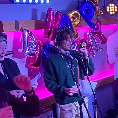 Connor and guests try to guess what TV theme Alana is playing badly on her tin whistle