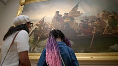 The theme of art and politics as indivisible begins. The Samuel family analyses the messaging in one of the Met's keystone treasures, Emanuel Leutze's Washington Crossing the Delaware. It's a celebrated depiction of heroism, idealising a pivotal moment in the struggle to create the republic, which forms part of the national narrative displayed in the American Wing. Kristen Samuel is a dispassionate viewer, but finds little to interest her.