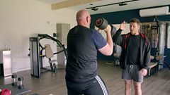 The gang take part in a vigorous boxing workout, while in the ring Bev puts Tom in a corner.