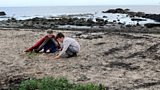 5/10 Gudrun and her friend Olaf build a sandcastle for the shore crab. (R)