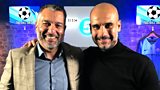 Football manager Pep Guardiola talks to journalist Guillem Balague. (R)