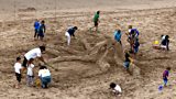 1/25 Tig builds a sandcastle at the beach and wants to take it home with her. (R)