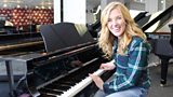 Maddie looks at musical instruments. She uses a special camera to see how a piano works. (R)