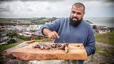 Gwyliwch Chris yn cychwyn y gyfres newydd gyda swper 'sizzling' bwyd m么r mewn man bwyta... (A)