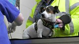 Mae morgi wedi llyncu pysgodyn dreiniog ac mae'n rhaid i'r criw fentro y tu mewn iddo i... (A)