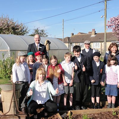 Leigh Milner meets Digby pupils at their 1940s-themed garden.