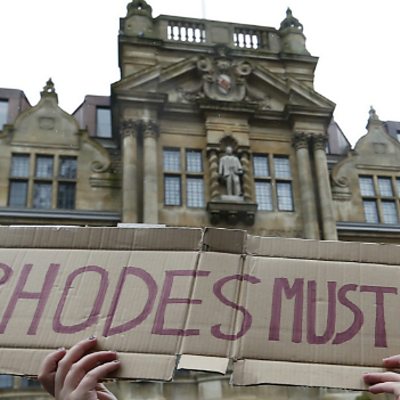 Campaigners have taken to the streets calling for the removal of a statue of the British imperialist Cecil Rhodes at an Oxford University college. About 150 protesters took part in the march which gathered at Oriel College, the home of the statue. The 成人快手's Robert Pigott was there. (Photo: Students protest under the statue of Cecil Rhodes outside Oriel College in Oxford University, on March 9th. Credit: Reuters)