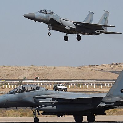 Former diplomat, Nabeel Khoury says without the support of the US and the UK, Saudi Arabia would be hard-pressed to continue their military campaign in Yemen. (Photo: Saudi F-15 fighter jet landing at a military airbase, some 880 km from the capital Riyadh, as the Saudi army conducts operations over Yemen. Credit: Getty Images)