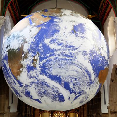 Giant planet Earth ‘Gaia’ installation on display at Leicester Cathedral