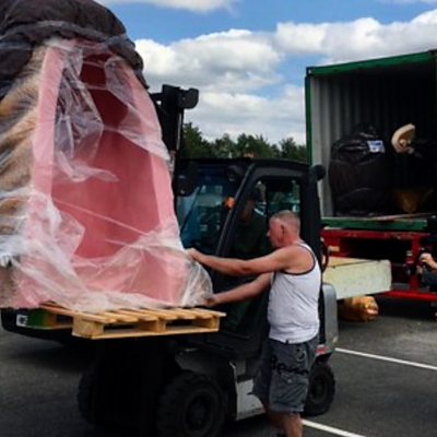 A flatpack dinosaur has finally made it to its Cambridgeshire destination.
